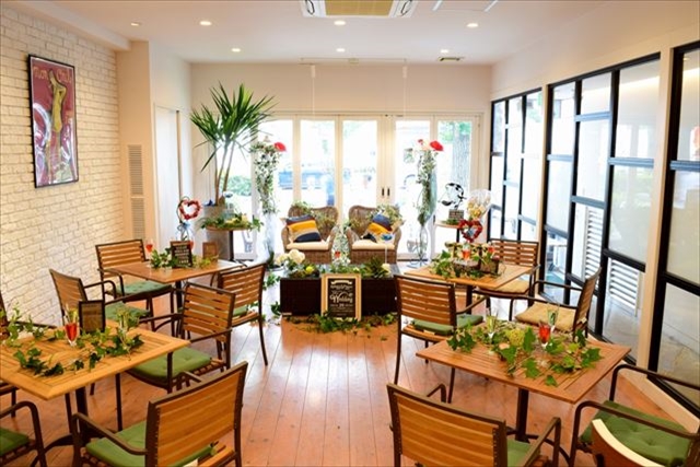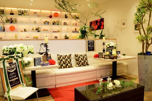 真っ白なかわいいデザインの店内はテーブルレイアウトも自由のくつろげるパーティースペース。
