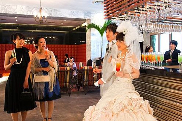 バーカウンターからウエルカムドリンク片手に始まるカジュアルなパーティもおすすめ。