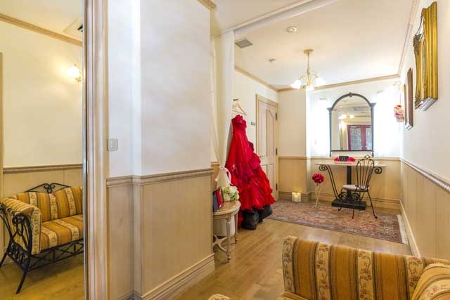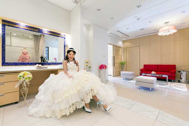 広々としたスペースでドレスチェンジやメイクもゆったりとした雰囲気で過ごせる。