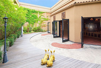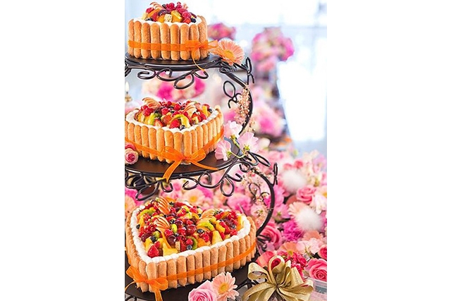 パティオでは人気のデザートブッフェやケーキカット、シャンパンセレモニーなどが楽しめる。
