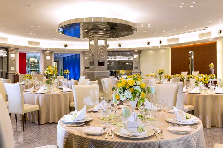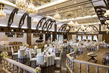 ロンドンにある伝統的なダンスホールをイメージして作られているのでパーティーとしての華やかさを存分に満喫できるバンケット。