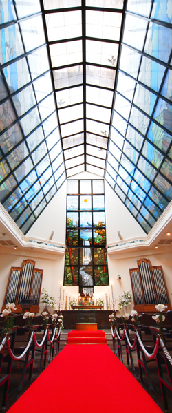 セレモニーは清らかなパイプオルガンとフルートの優しい音色に包まれ、牧師と6人の聖歌隊に執り行われ、荘厳な雰囲気に溢れる。