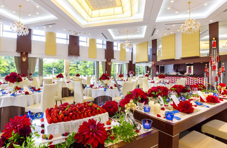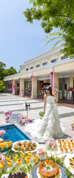 デザートビュッフェやシャンパンセレモニー等を、ガーデンにて行う趣向を凝らしたパーティも楽しめる。