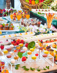 華やかなパーティのクライマックスには20種類以上のデザートと季節のフルーツをおもてなしの気持ちを込めてブッフェスタイルで。