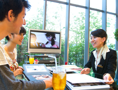 陽光降り注ぐ開放感溢れるサロンで打合せ、衣裳選びなどを挙式当日までバトラーやコスチュームアドバイザーが二人をばっちりサポート。