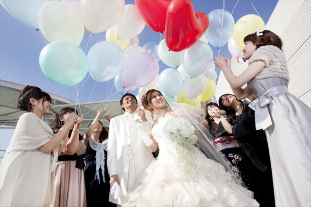 オープンエアならではのフラワーシャワーやバルーンリリースも人気の演出。