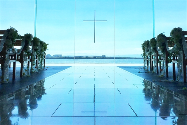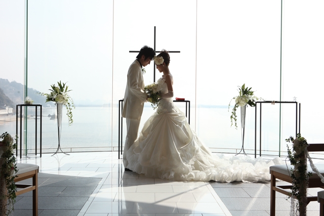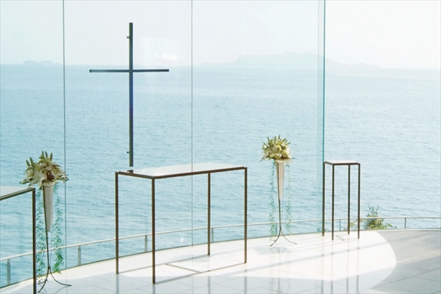 90名まで収容できるオーシャンビューチャペル「シーグレイス」が人気。
