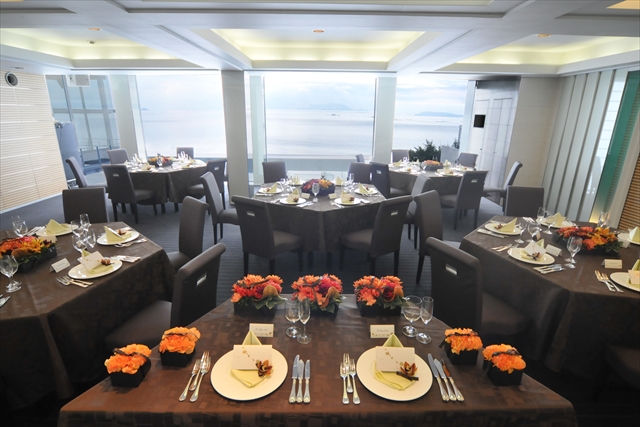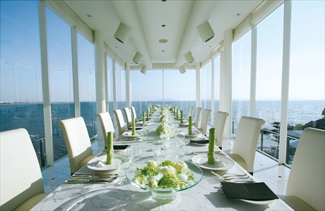 海が望める大中小の会場に加え、館内のレストランも会場として利用可能。