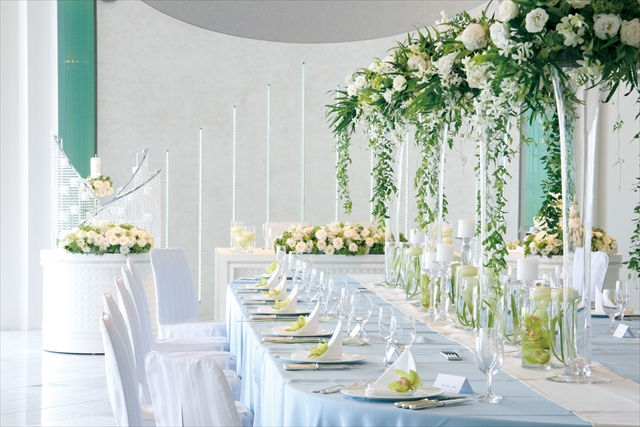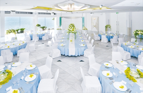 大人数でのご披露宴には、白を基調としたエレガントな大宴会場「シーショアホール」。