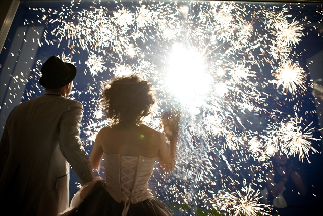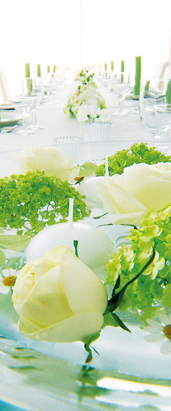 ロマンティックなキャンドルの灯りを映し出す水面や、つややかな石畳が、挙式を華麗に、また厳かに演出してくれる。