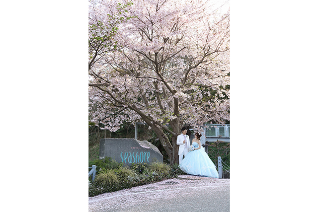 ホテルにはウエディングシーンを創造できるスポットも多く、ふたりだけの演出も可能。