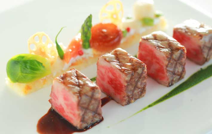 新鮮な美味しさをシンプルに仕上げた料理の数々は他では味わうことの出来ない五感で愉しむウエディングコース。