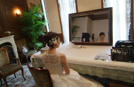 窓からは自然光が差し込み、少しずつ憧れの花嫁姿へと変わっていくシーンを、優雅な時の流れが見守ってくれる。
