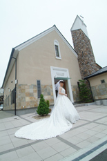 サンヴェルジュメゾンでレストランウエディングをお考えのおふたりに、木立に囲まれたこの本格的な教会で憧れのチャペルウエディングを
