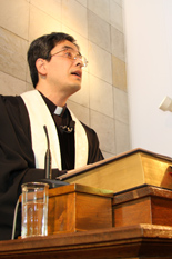 閑静な住宅街に佇む「五軒邸教会」。